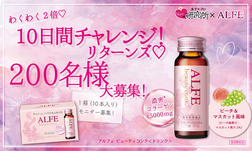 【モニター募集!】わくわく2倍♡「10日間チャレンジ!リターンズ♡」美容ドリンク「アルフェ ビューティコンク」(10本セット)200名大募集♡